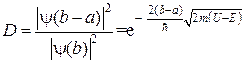 Для описания туннельного эффекта вводится понятие прозрачности D потенциального барьера как отношение вероятностей нахождения частицы за барьером к вероятности нахождения частицы перед барьером. Вероятность нахождения частицы определяется квадратом волновой функции. Поэтому, прозрачность потенциального барьера равно отношению квадратов соответствующих волновых функций. Решение уравнения Шредингера для прямоугольного потенциального барьера конечной высоты U показывает, что прозрачность барьера шириной (b-a) выражается формулой