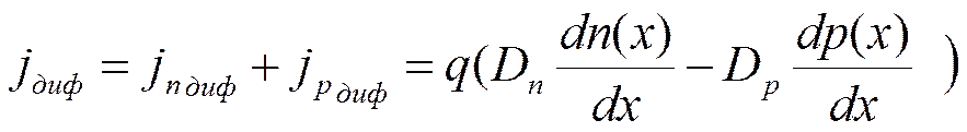 Плотность полного диффузионного тока, проходящего через границу раздела, определится суммой: