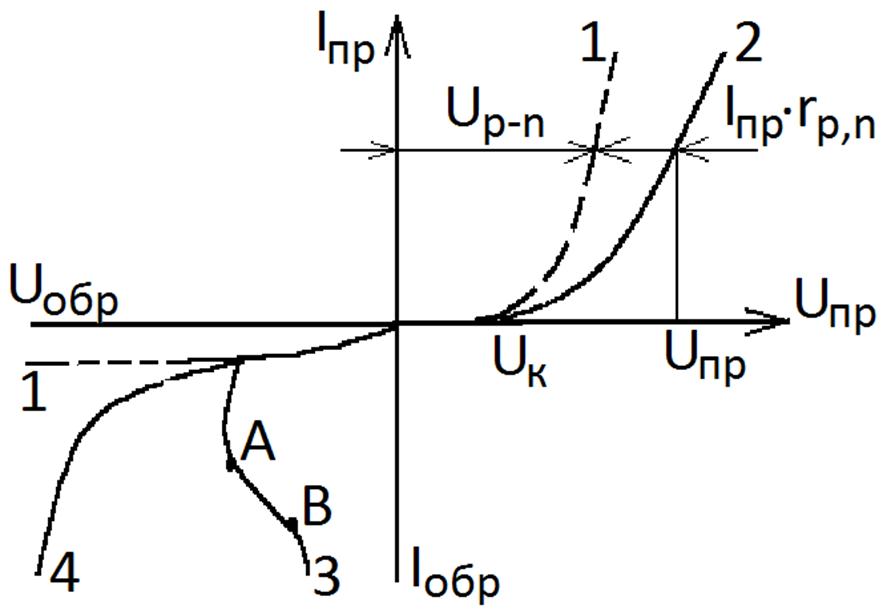 Тепловой пробой обусловлен значительным ростом количества носителей зарядов в p-n переходе за счет нарушения теплового режима