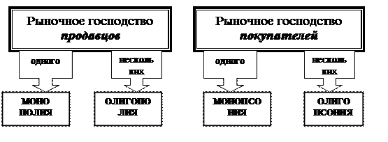 В экономике различают следующие четыре варианта монопольного (господствующего) положения предприятий, фирм на рынке (Рис. 5.3.2.):