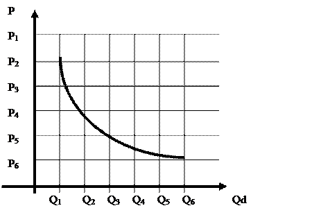 Рис. 6.1.1. Зависимость спроса от цены (закон спроса).