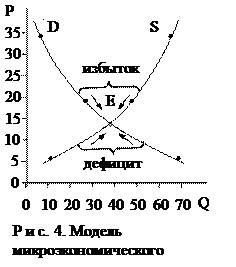 Модель частичного равновесия рынка, где пересечение кривой спроса D и кривой предложения S образует точку Е рыночного равновесия (рис.4). Здесь спрос и предложение уравновешиваются, интересы покупателей и продавцов совпадают или согласовываются. Равновесное количество товара готовы приобрести по установившейся цене покупатели и готовы продать товаропроизводители. Это и будет равновесная рыночная цена за товар.