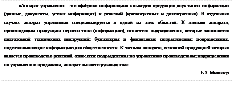 Помимо названных категорий в информационную среду организации входят овеществленные знания ( объективированная в продуктах, материалах и услугах информация); информационно-технические средства управления; информационные технологии; система документооборота; культура управленческих отношений.