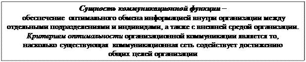 По оценкам специалистов руководитель в среднем тратит на коммуникацию 75-90% своего рабочего времени. Целями деловой коммуникации являются: обмен информацией, оказание определенного влияния, инструктаж, контроль, отчет. В связи с этим можно говорить об информационной, мотивационной, контрольной функциях коммуникации. Немаловажной является также экспрессивная функция, связанная с эмоциональным выражением чувств, переживаний и отношений к происходящему, с удовлетворением социальных потребностей в общении. Задача менеджера – создать и поддерживать такую систему организационной коммуникации, которая будет способствовать повышению показателей производственной деятельности, степени удовлетворенности сотрудников. Решение этой задачи предполагает знание моделей и механизмов коммуникационных процессов; умение выявлять проблемы и противоречия функционирования коммуникационной системы; навыки разработки и реализации проектов совершенствования коммуникационной системы.