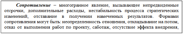 Масштабные организационные изменения, такие как реинжиниринг бизнес-процессов, преобразование организационной структуры, изменение культуры, нуждаются не только в планировании, организации, контроле, но и преодолении сопротивления этим изменениям.