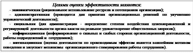 Оценка эффективности – это непрерывный, тотальный процесс вынесения суждения о деятельности организации, ее структурных подразделений и каждого сотрудника, имеющий своим содержанием: