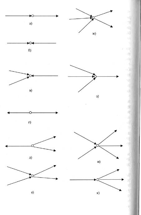 Сужающееся соединение, при котором количество выходов данного узла связи меньше, чем входов (рис. 5.2ж). Частным вариантом является конвергентное соединение, имеющее только один канал выхода (рис. 5.2з).