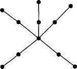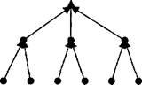 Звездная (рис. 5.5а). Разомкнутая конфигурация. Характерны четкая централизация и отсутствие периферийных связей. Сформирована на основе расширяющегося (структура руководства) или сужающегося (структура обратной связи) типов соединений.
