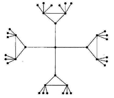 Сложные структуры формируются на основе не одной, а нескольких базовых конфигураций. Чем разнообразнее применяемые конфигурации, тем сложнее структура. Более сложные структуры являются и более масштабными, в них широко развернуты периферийные связи, сформированы и четко обозначены звенья среднего уровня (рис. 5.12).