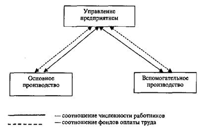 Рис. 5.14. Схема взаимосогласованности численности работников и фондов оплаты труда управления предприятием, основного и вспомогательного производства