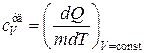 Величина теплоемкости зависит от условий, при которых происходит нагревание тела. Если нагревание происходит при постоянном объеме, то теплоемкость называется теплоемкостью при постоянном объеме и обозначается .