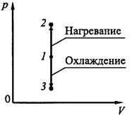 Изохорический процесс. Если газ нагревается или охлаждается при постоянном объеме (рис.18.2), то dV = 0 и работа внешних сил равна нулю