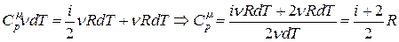 Получим выражения для молярной и удельной теплоемкостей идеального газа при постоянном объеме. Чтобы получить формулу для изменения внутренней энергии идеального газа, применим соотношение (2.6)