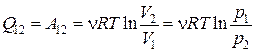 и подставив в последнюю формулу, получим выражение для работы, совершаемой газом при изотермическом процессе