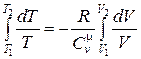 Проинтегрируем (18.32) от Т 1 до T 2, и от V 1 до V 2: