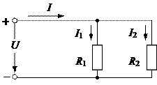- ток I, А, в неразветвленной части цепи равен сумме токов параллельных ветвей: