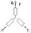 Для упрощения схемы (рис. в) достаточно заменить схему «треугольник» с сопротивлениями R 12, R 23, R 31 эквивалентной схемой «звезда» с сопротивлениями R 1, R 2, R 3. Эквивалентность требует, чтобы в обеих схемах были одинаковые токи узлов, а также напряжения между узловыми точками. Схема представлена на следующем рисунке.
