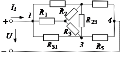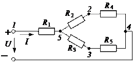 R экв= R 1+ [(R 2 + R 4)(R 3 + R 5)/((R 2 + R 4)+ (R 3 + R 5))],