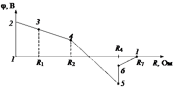 Потенциальная диаграмма – график распределения потенциала в цепи в функции сопротивления участков цепи φ = f (R).