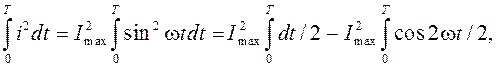 Количество теплоты Q, выделяемое в резисторе R за время Т при синусоидальном токе:
