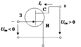 Когда U cи + | U зи| = U зап, обедненные слои перекрывают канал и сопротивление канала резко возрастает (насыщение, I c = сonst).