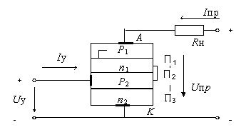 Величину U вкл можно снизить введением не основных носителей заряда тока в слой, прилегающий к П2, с помощью управляющего электрода.