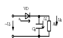 Емкостный фильтр с одним диодом представлен на рисунке.