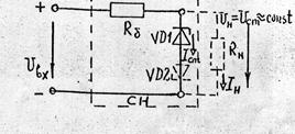 Параметрический стабилизатор. Используется кремниевый стабилитрон V D1, параметры которого (R) изменяются с изменением