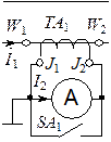 Первичная обмотка ТТ имеет небольшое количество витков w 1 и включается в разрыв линии с измеряемым током I 1. Первичная обмотка условно изображается в виде отрезка проводника с зажимами W 1, W 2. Ко вторичной обмотке ТТ, число витков которой w 2 >> w 1, последовательно подключается амперметр. Поскольку сопротивление амперметра мало, то ТТ работает в режиме, близком к режиму короткого замыкания. В отличие от силовых трансформаторов первичная обмотка ТТ, имеющая малое комплексное сопротивление, подключается последовательно с потребителем, и ток 1 определяется только потребителем. Можно считать, что ТТ подключен к источнику тока = 1. Вторичный ток İ 2 трансформатора тока оказывает, как и в силовом трансформаторе, размагничивающее действие. Однако компенсирующего роста тока I 1 здесь нет, поэтому рабочая намагничивающая сила p =