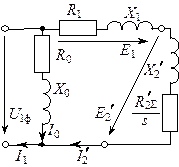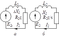 Реактивное сопротивление цепи ротора Х 2 s зависит от частоты f 2 и равно Х 2 s = 2π f 2 L 2 = 2π f 1 sL 2 = sX 2, где Х 2= 2π f 1 L 2, и L 2 – соответственно, индуктивное сопротивление и эквивалентное значение индуктивности неподвижного (заторможенного) ротора. Схема замещения на рис. а соответствует уравнению