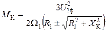 где X К – реактивное сопротивление при критическом моменте(X К = = X 1 + X).