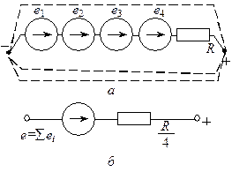 | . ЭДС в обмотках ДПТ (а) и их эквивалентная схема (б) |