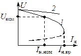 Для генератора с последовательным возбуждением I я = I в = I н. Внешняя характеристика ГПТ показана на рисунке. Сильная зависимость напряжения от нагрузки делает эти генераторы малопригодными для большинства потребителей.