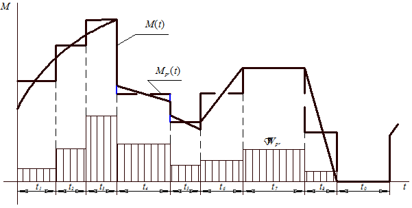 Если имеется такой расчетный график нагрузок М (t)и известно приведенное эквивалентное сопротивление R э, при котором потери энергии Δ W в ЭДУ определяются выражением