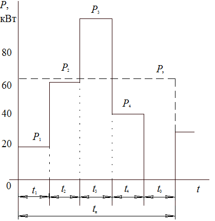Выбор мощности ЭДУ режима S 1 для ЭП с длительной переменной нагрузкой. Для того чтобы правильно выбрать ЭД режима S1 для длительной переменной механической нагрузки по условиям тепловых перегрузок, необходимо реальный график механических нагрузок заменить расчетным (рис.), эквивалентным действительным электрическим потерям энергии в ЭД.