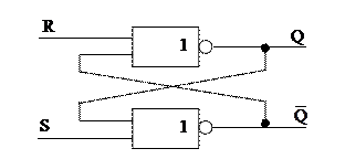 Буквой R (Reset) обозначается сигнал сброса триггера в 0, а буквой S (Set) – сигнал установки триггера в 1. Для RS- триггера на элементах «ИЛИ-НЕ» при подаче на его входы R и S нулевых сигналов сохраняется его одно из двух устойчивых состояний. Например, если значение на выходе Q равно 1, то этот единичный сигнал поступает по цепи обратной связи на вход второго элемента и вызывает появление на выходе