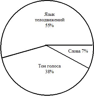 · лишь 7% – вербальной составляющей, т.е. словами, которые составляли сообщение.