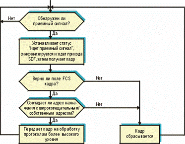 Структурная схема алгоритма CSMA/CD при приеме кадра станцией представлена на рис.1б.