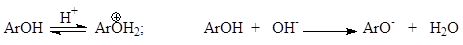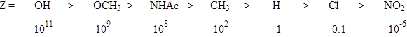 При этом необходимо учитывать условия реакции. Например, если протонировать гидроксильную группу в феноле или амино – в амине, то скорость реакции будет мала, а замещение пойдет в мета -положение, наоборот в щелочной среде активность фенола возрастает на несколько порядков: