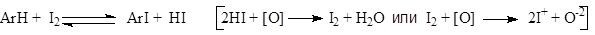 При использовании каталитических количеств иода идет хлорирование, так как образуется катион СlÅ, а при соотношениях близких к эквимолекулярным – иодирование, так как образуется IÅ.