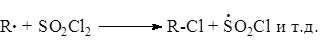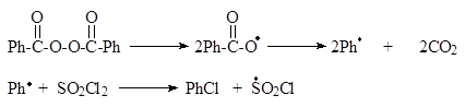 А) Химизм хлорирования сульфурилхлоридом с участием перекиси бензоила: