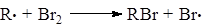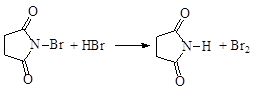 Б) Химизм бромирования N-бромсукцинимидом. После инициации реакции и образования радикала Br ., цепная реакция имеет следующий вид:
