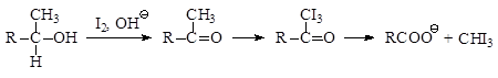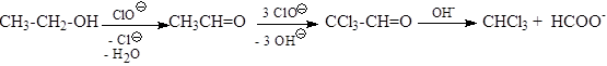Хлороформ получают этим методом из ацетона или этанола и хлорной извести. При этом спирт вначале окисляется до ацетальдегида а затем идет галоформная реакция: