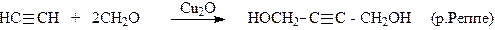 - Гидроксиметилирование ацетилена имеет место в синтезе поливинилпирролидона: