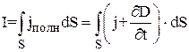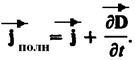 Далее, Максвелл ввел понятие полного тока, равного сумме токов проводимости (а также конвекционных токов) и смещения. Его плотность равна