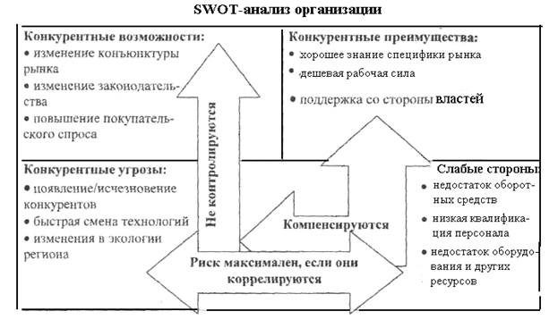 информацию, которую целесообразно использовать в рамках SWOT-анализа, т. е. определения сильных, слабых сторон, возможностей и угроз. Последний дает возможность организации четко понять свои стратегические перспективы и сделать все возможное, чтобы не допустить больших потерь от наиболее вероятных рисков.