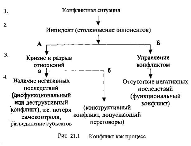 Конфликт как процесс может быть представлен в виде модели (рис. 21.1)