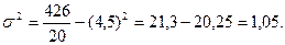 2. Дисперсия есть разность между средней из квадратов значений признака и квадратом их средней: