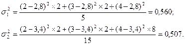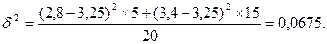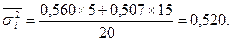 Общую дисперсию, отражающую вариацию выработки рабочих под влиянием всех факторов, исчислим по правилу сложения дисперсий: σ2 = 0,0675 + 0,520 = 0,5875.