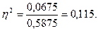 Показывает влияние признака, положенного в основание группировки, на вариацию результативного признака. Оно колеблется в пределах от 0 до 1. Если η = 0, то группировочный признак не оказывает влияния на результативный, если η = 1, то результативный признак изменяется только в зависимости от признака положенного в основание группировки, а влияние прочих факторных признаков равно нулю.